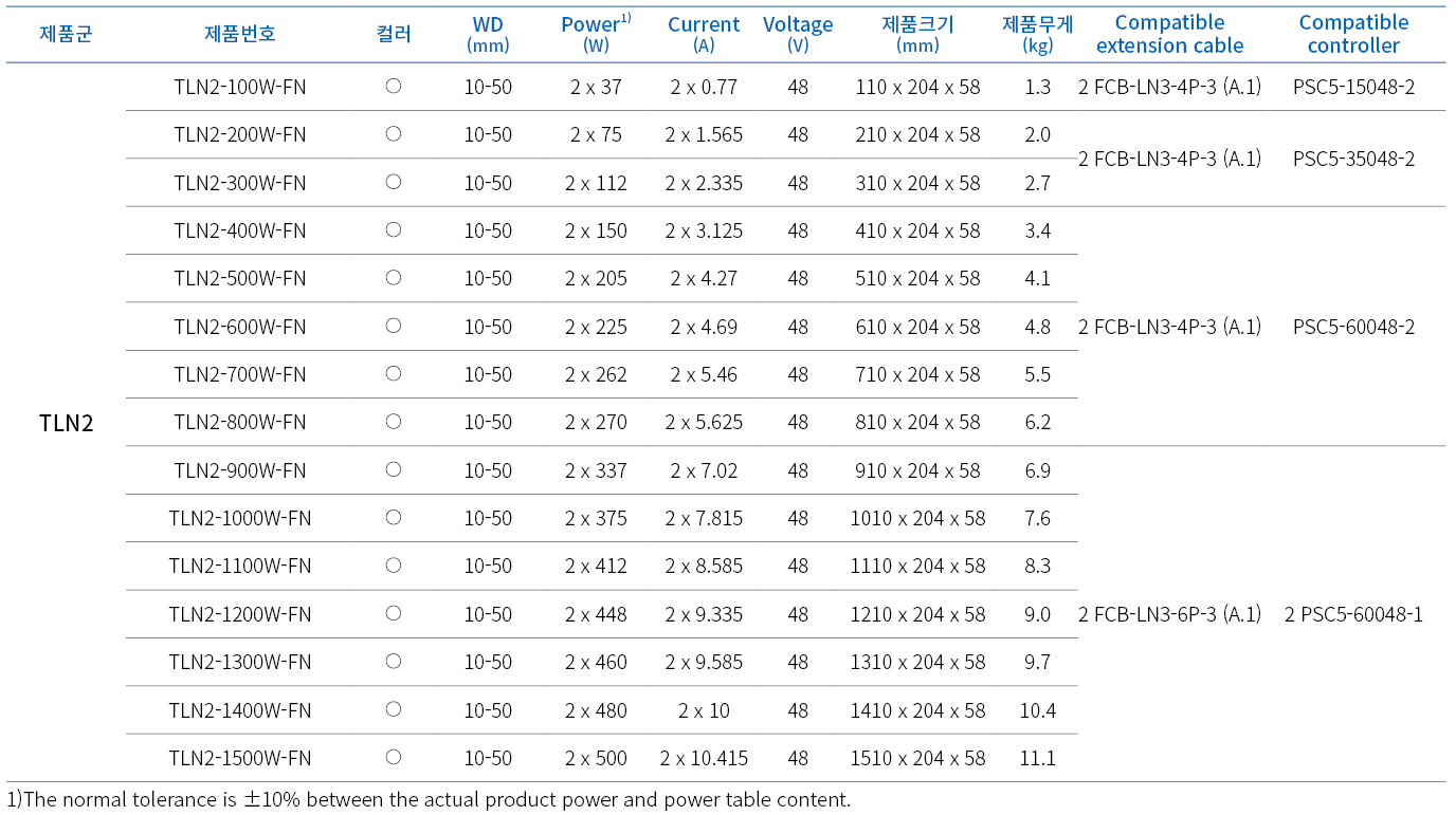 | Partnumber | TLN2-0000Color-FN (0000=Emitting surface length/FN=Fan cooling) |