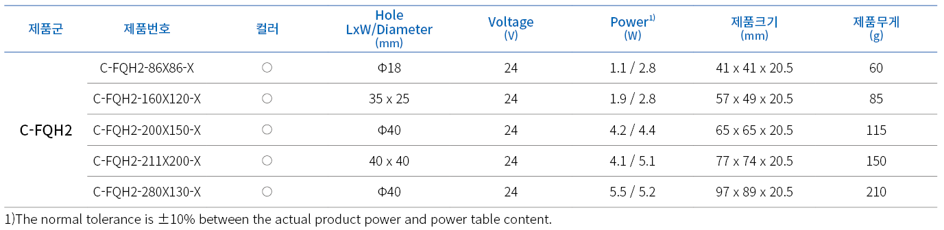 | Partnumber | C-FQH2-000X***Color-X (000:Emitting surface length/***:Emitting surface width/X:Verision) |