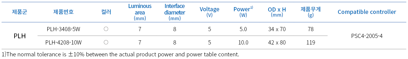 | Partnumber | PLH-00**-nColor (00:Max OD/**:Interface diameter/n:Power) |