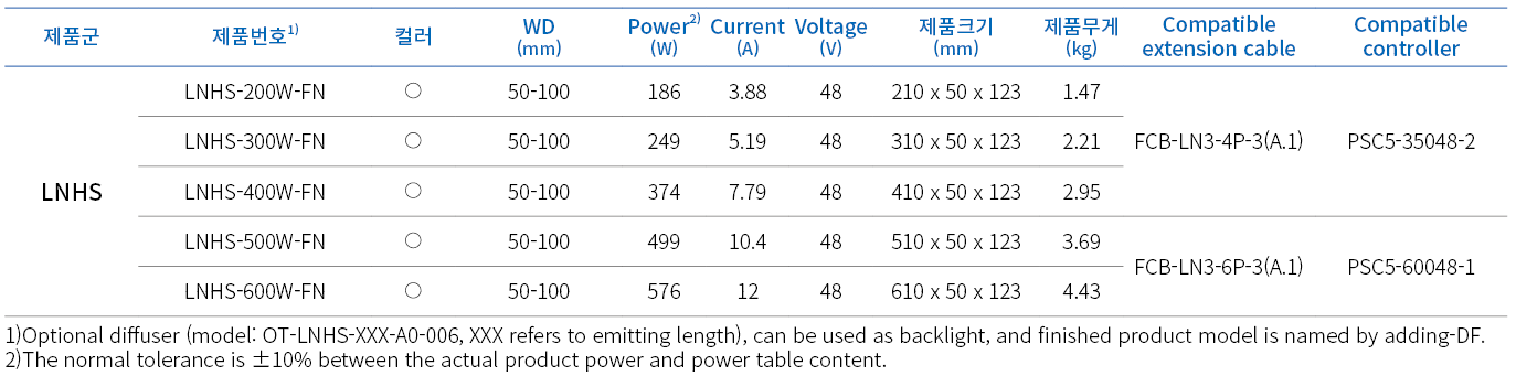 | Partnumber | LNHS-000Color-FN (000=Emitting length/FN=Fan cooling) |