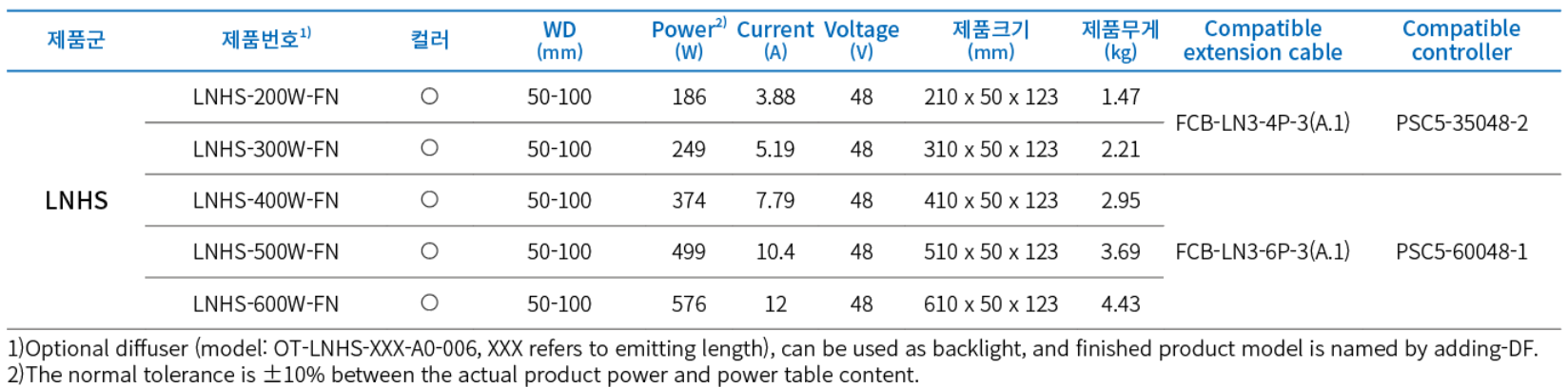 | Description | 최대 400만 lx(WD: 50mm) 조도의 초고휘도 라인 조명 |