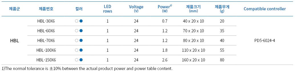| Partnumber | HBL-000X*Color (000:Emitting surface length/*:Emitting surface width) |