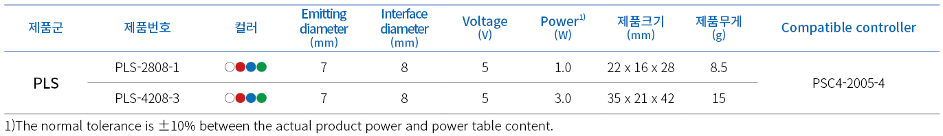 | Partnumber | PLS-00**-nColor (00:Height/**:Interface diameter/n:Power) |