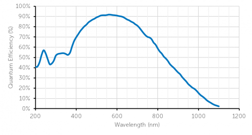 후면 조명 덕분에 COSMOS는 거의 완벽에 가까운 집광효율을 달성하여 90% 이상의 피크 양자 효율을 달성합니다. 최소 0.7 e- read noise와 0.05 e-/p/s 암전류로 COSMOS는 가장 약한 신호를 감지할 수 있습니다.